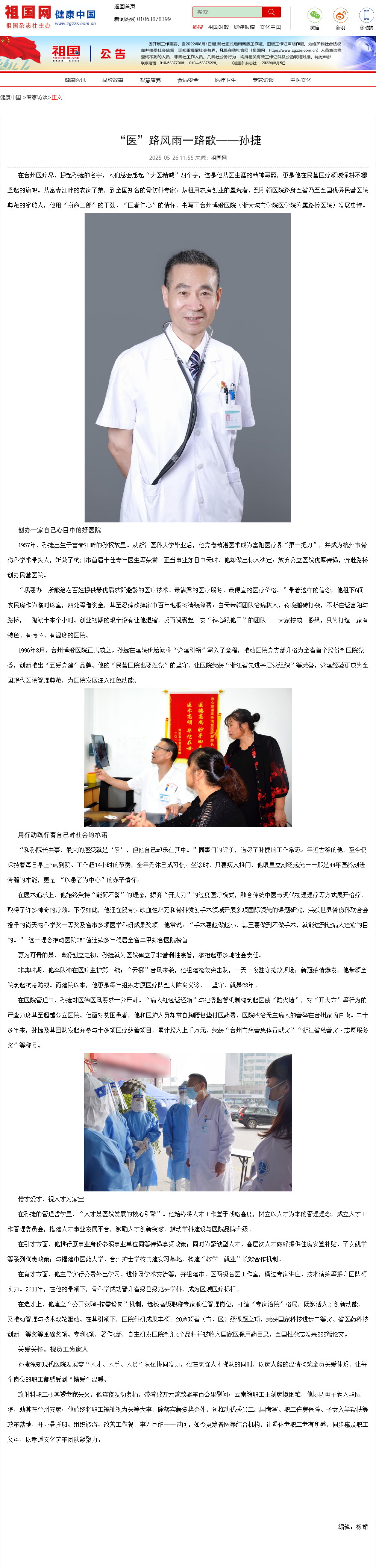 四十余载风雨行医路!《祖国网》深度专访台州博爱医院医共体党委书记孙捷教授,诉说医者赤子心