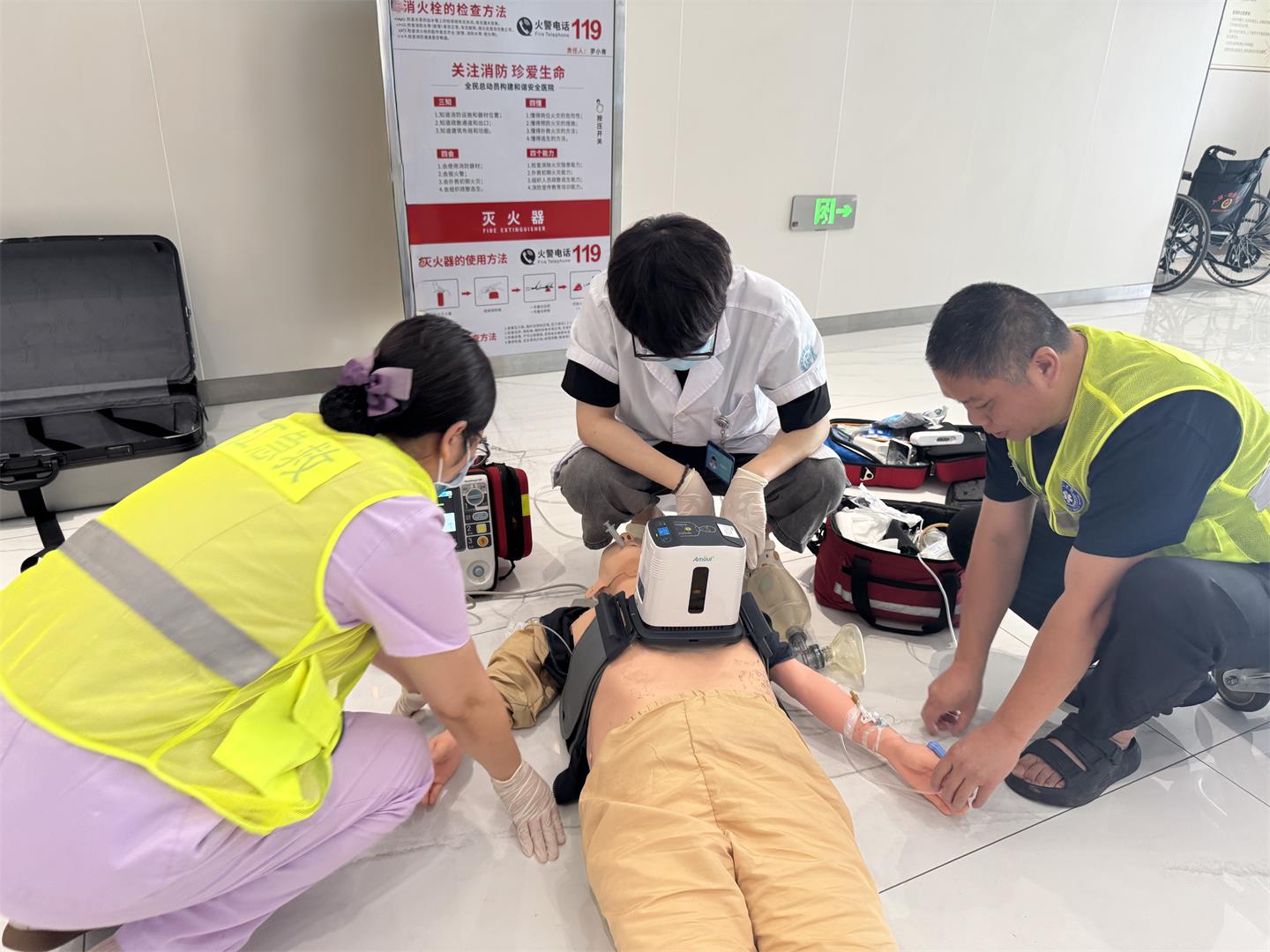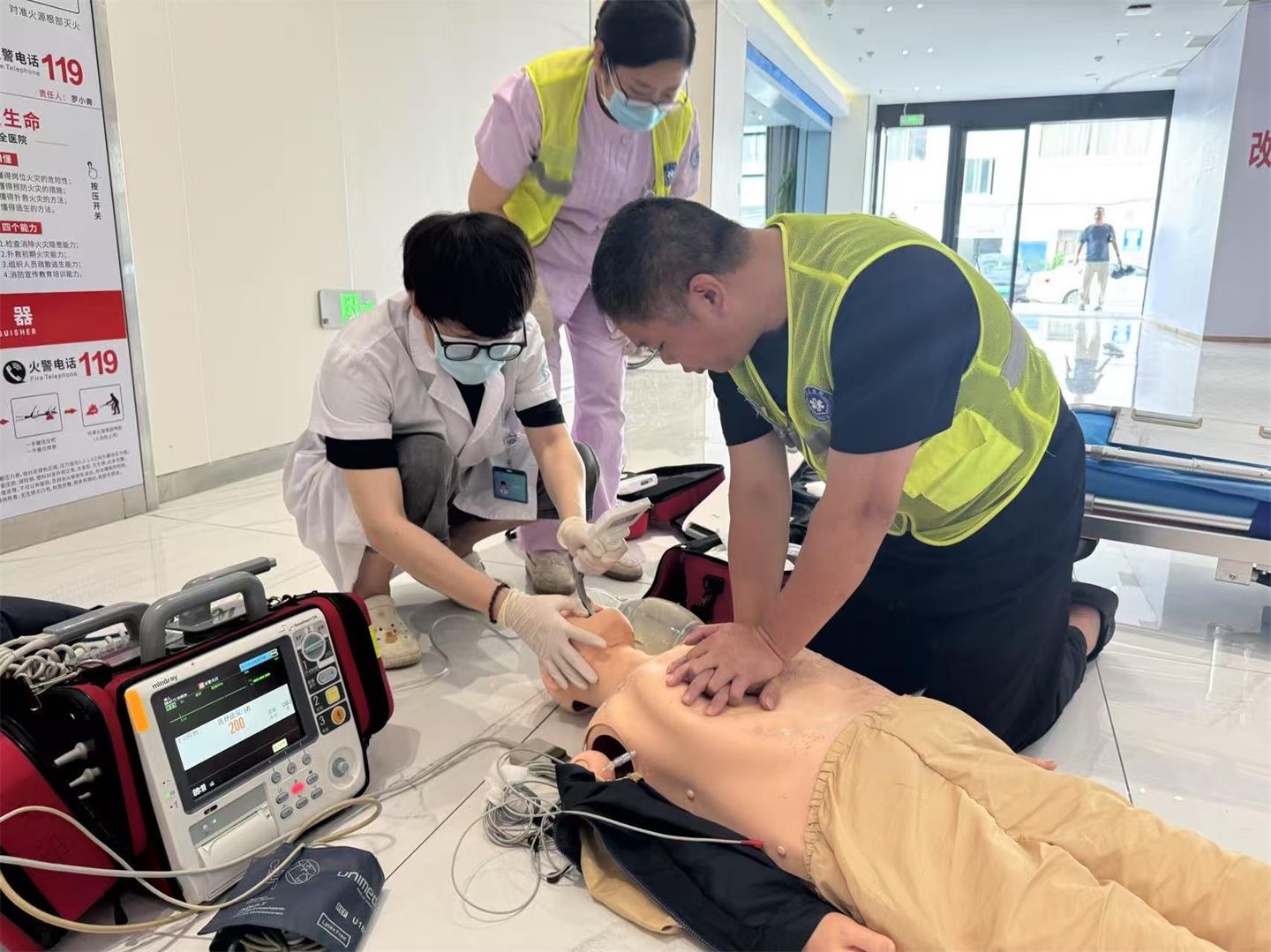演练以“一名市民在院外公共场所突发心搏骤停”为背景展开: