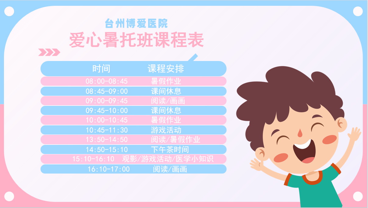 盛夏如歌,童心飞扬。为积极响应职工需求,切实解决职工子女暑期“看管难”问题,传递医院人文关怀,7月14日,由台州博爱医院妇委会精心组织的第二届职工子女暑托班正式开班,为孩子们搭建起安全、充实、快乐的成长平台。