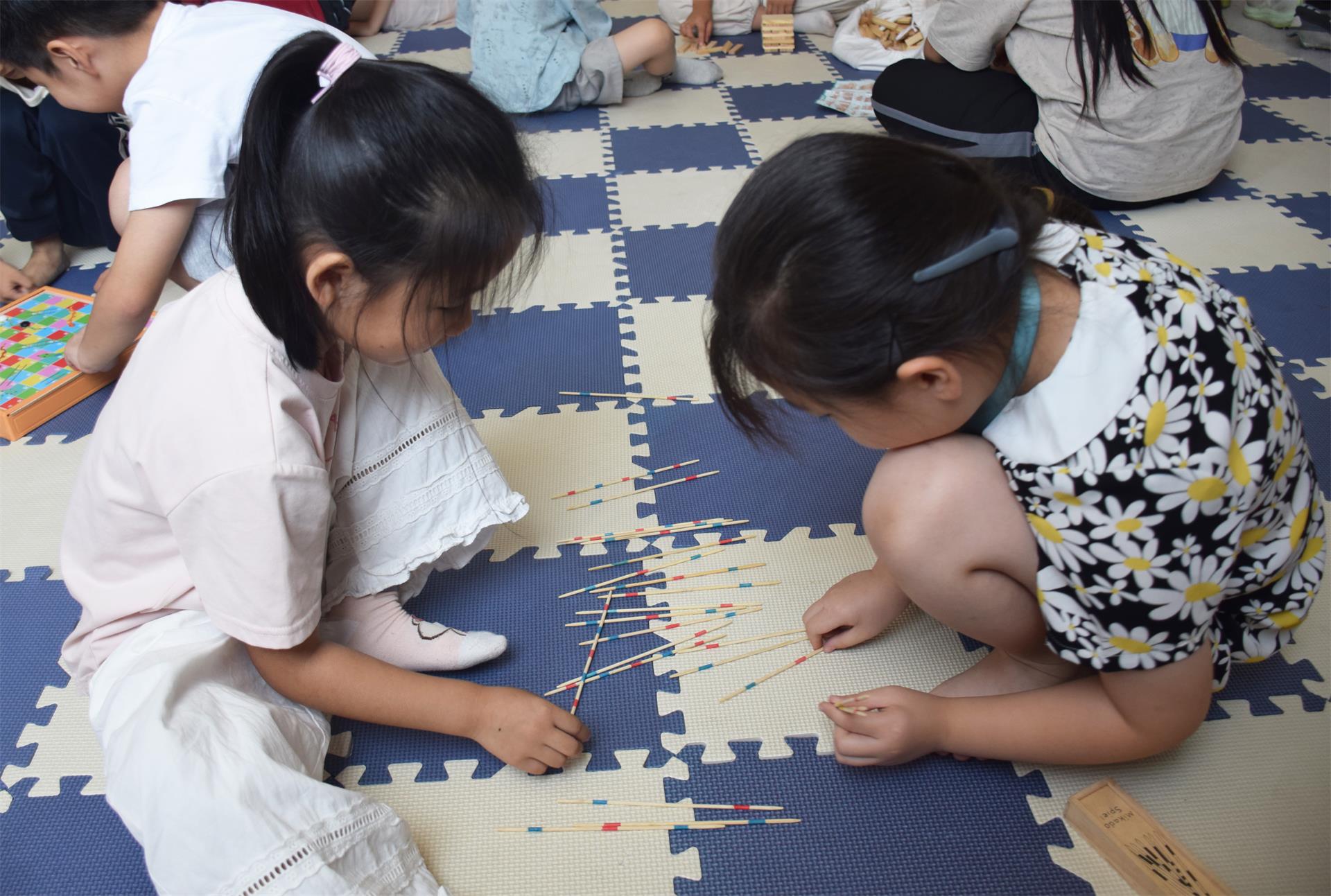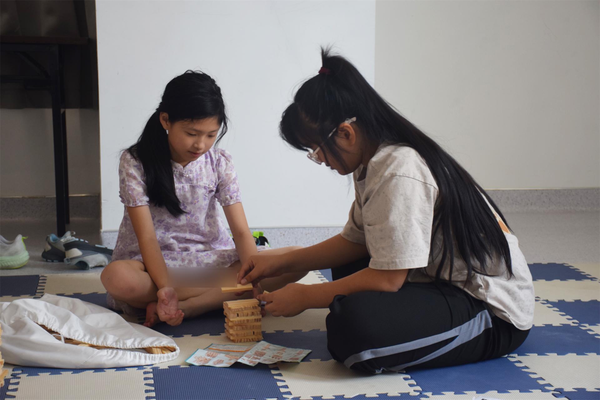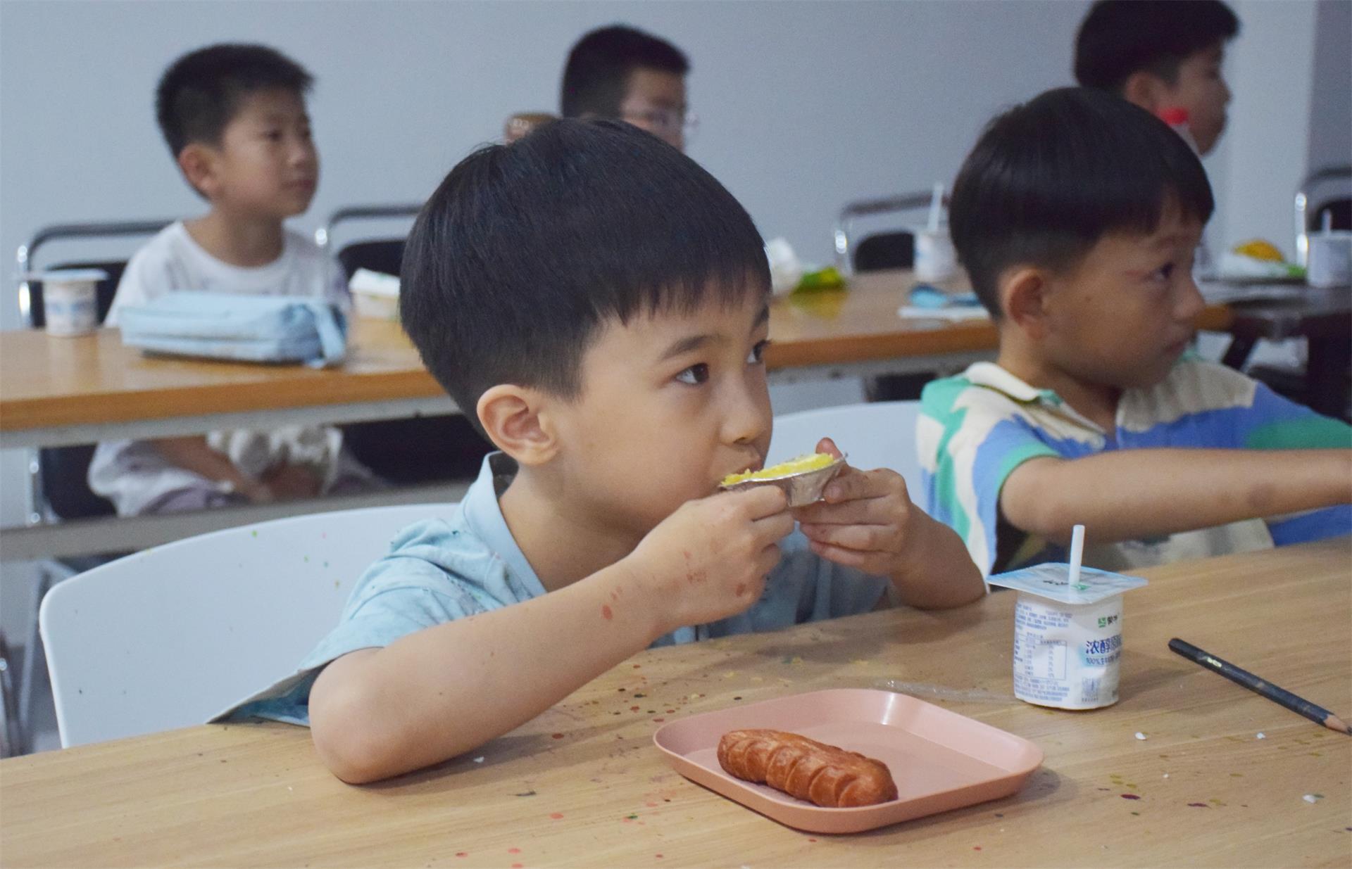 清晨的暑托班场地早已准备就绪,课桌椅整齐排列,墙上贴着孩子们喜欢的卡通贴纸,图书绘本按类别摆放得一目了然,活动区的积木、拼图等玩具静待“小主人”探索。