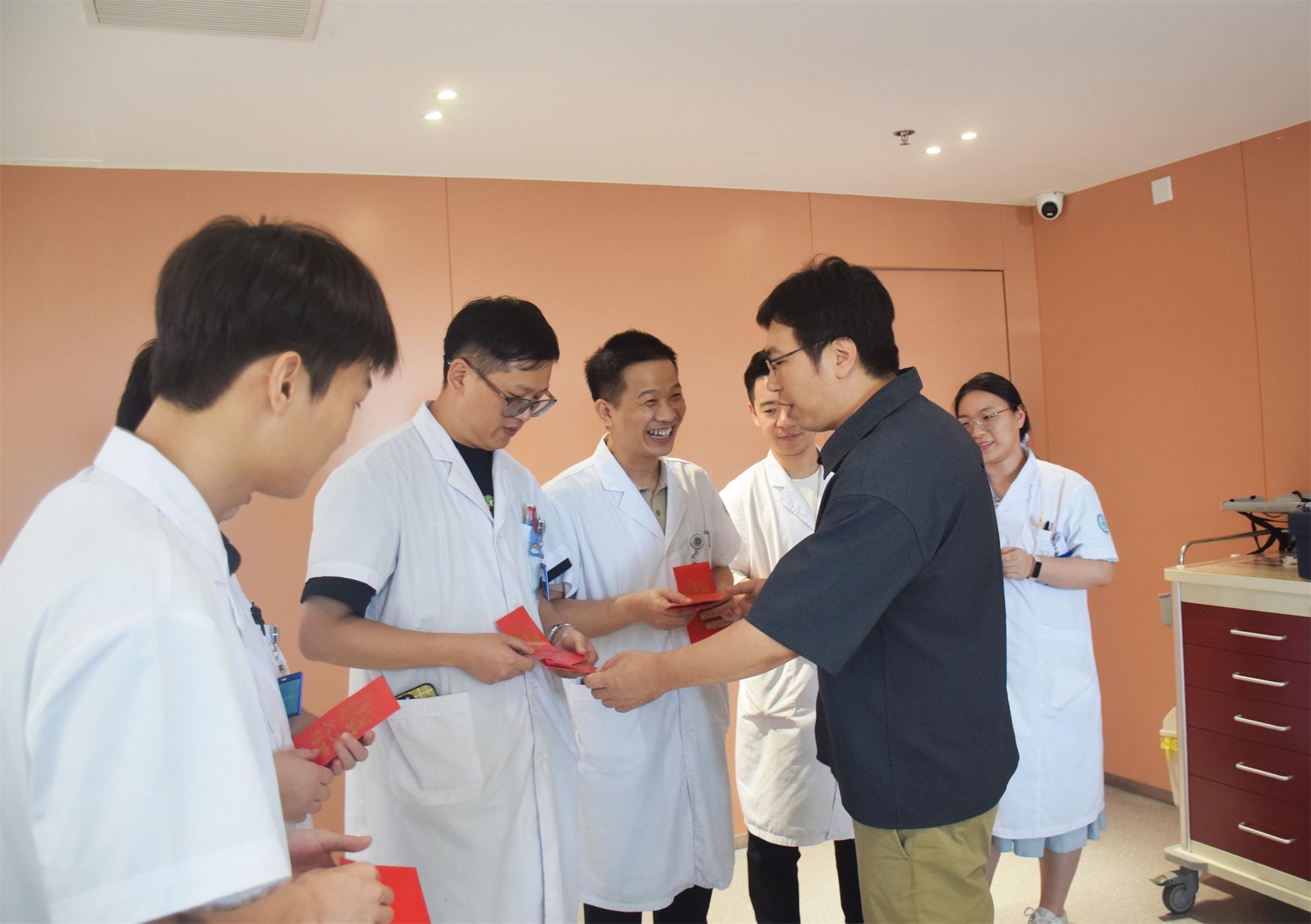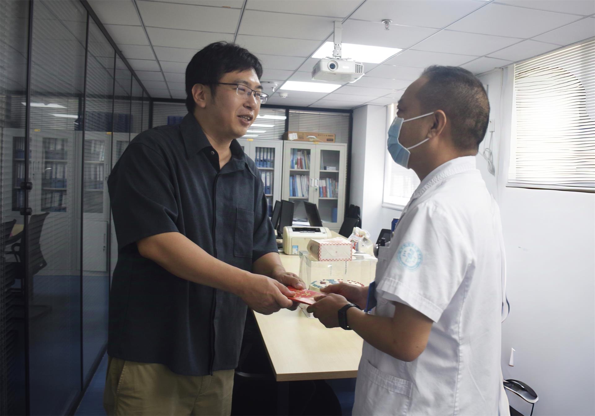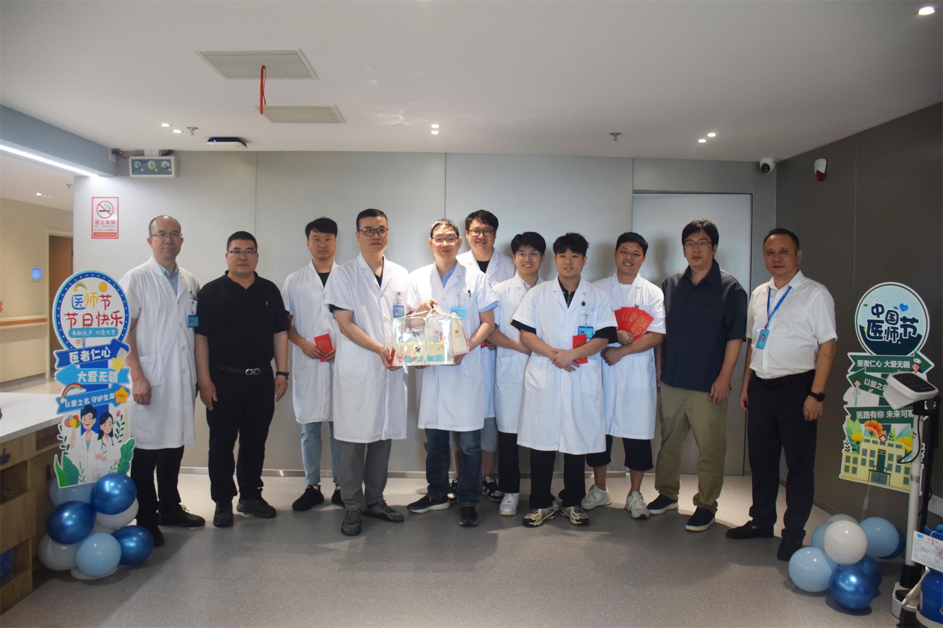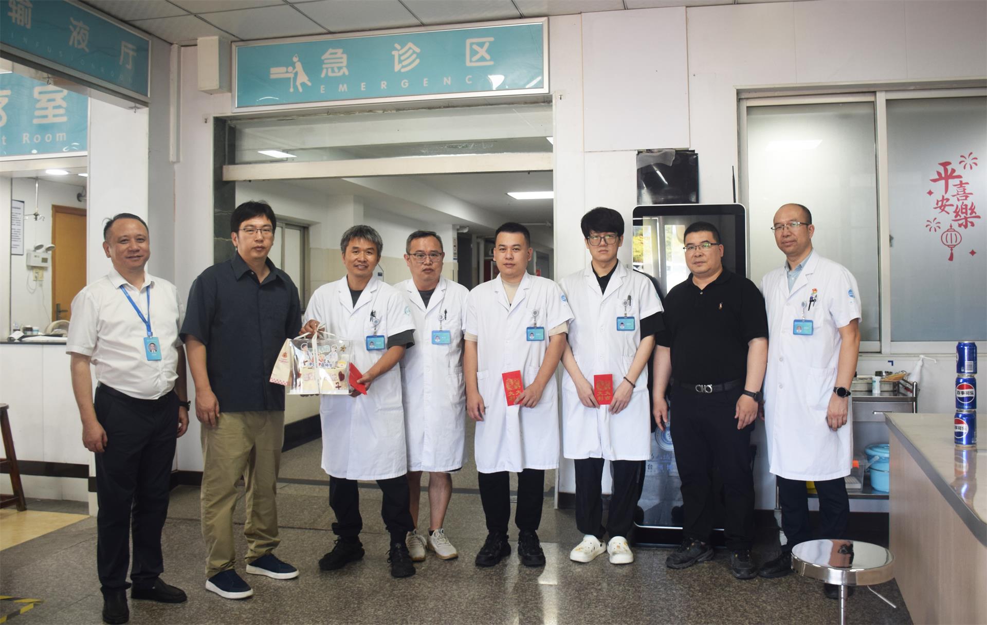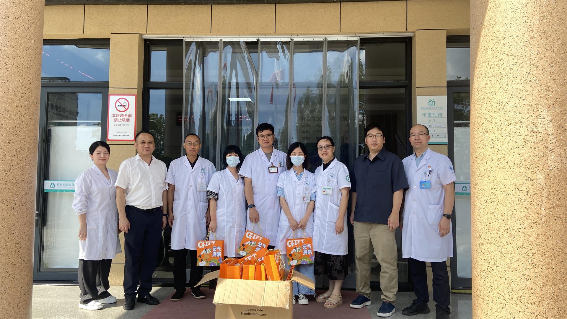 8月19日,台州博爱医院医共体开展“8·19中国医师节”慰问活动。医共体总院党委书记孙余恺博士,医共体党委副书记、总院院长干军辉,执行院长金智超,副院长吴晓君,院长助理王一茜一行先后走访了医共体总院及三家分院慰问临床一线医务工作者,为坚守岗位的医师们送上了最真挚的节日祝福与最崇高的敬意。