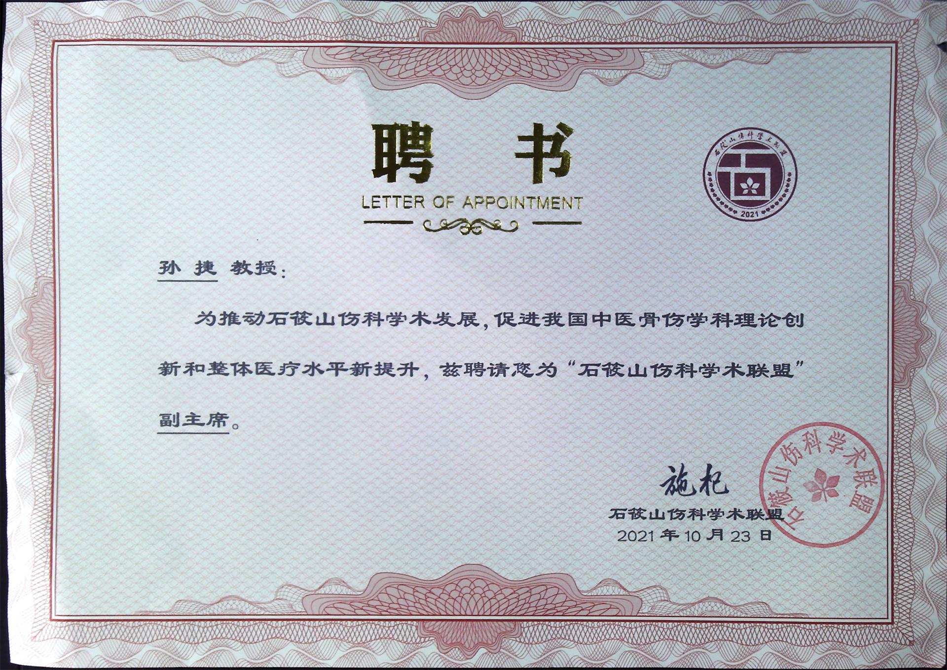 兼任《中医正骨》、《中华中医骨伤科》杂志学术编委、中华中医骨伤科学会委员、中华中医骨伤科股骨头坏死学组副主任委员、浙江省中西医结合学会骨伤科分会委员与市区政协委员、党代表等。