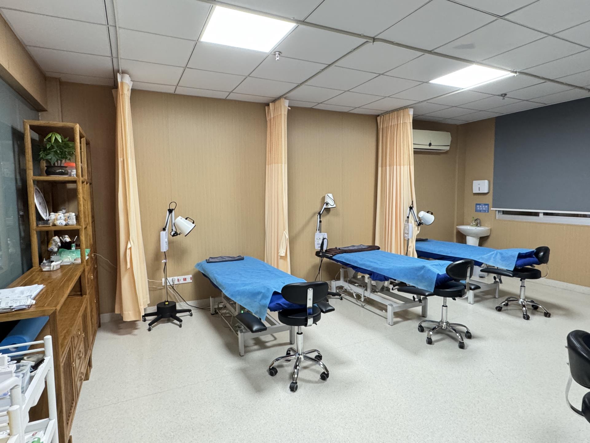 针灸区:除开展常规的电针、普通针刺等治疗外,还开展腹针、脐针、筋针、岐黄针、圆利针、火针、穴位埋线等特色针法,以针通经络,调和气血。
