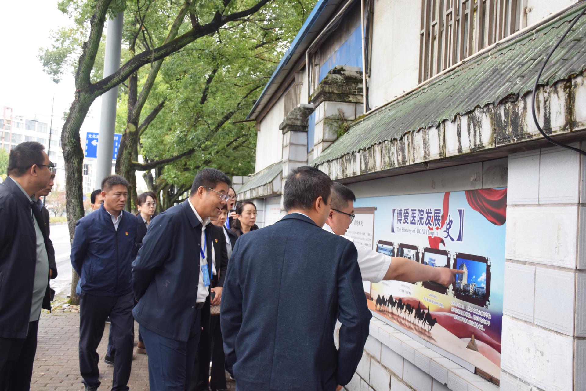 为全面了解医院党建引领高质量发展做法成效,增进双方互学互鉴,10月28日上午,新疆第一师阿拉尔市卫健系统党员干部一行20人莅临我院进行党建专题交流。路桥区卫健局党委副书记、副局长王辉军及相关工作人员陪同参观,台州博爱医院党委副书记、执行院长干军辉及领导班子等热情接待。