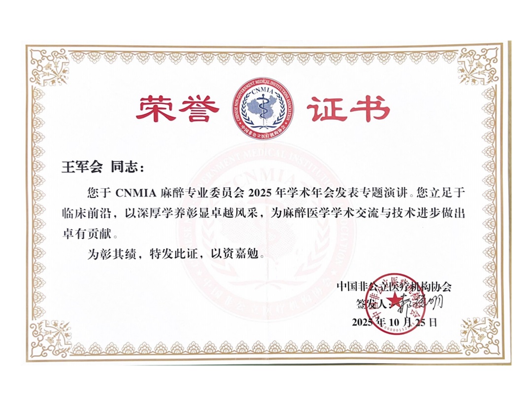 “身为协会常务委员,推动行业发展是必担之责;立足临床医生本职,守护患者安全是不变初心。”王军会院长表示,未来我院麻醉科将以本次年会为契机,深化超声引导神经阻滞等技术的临床应用与推广,推动技术体系标准化;继续以学术交流为桥梁,让创新麻醉技术走向基层、惠及患者,为非公立医疗机构麻醉学科发展持续贡献“我院智慧”。