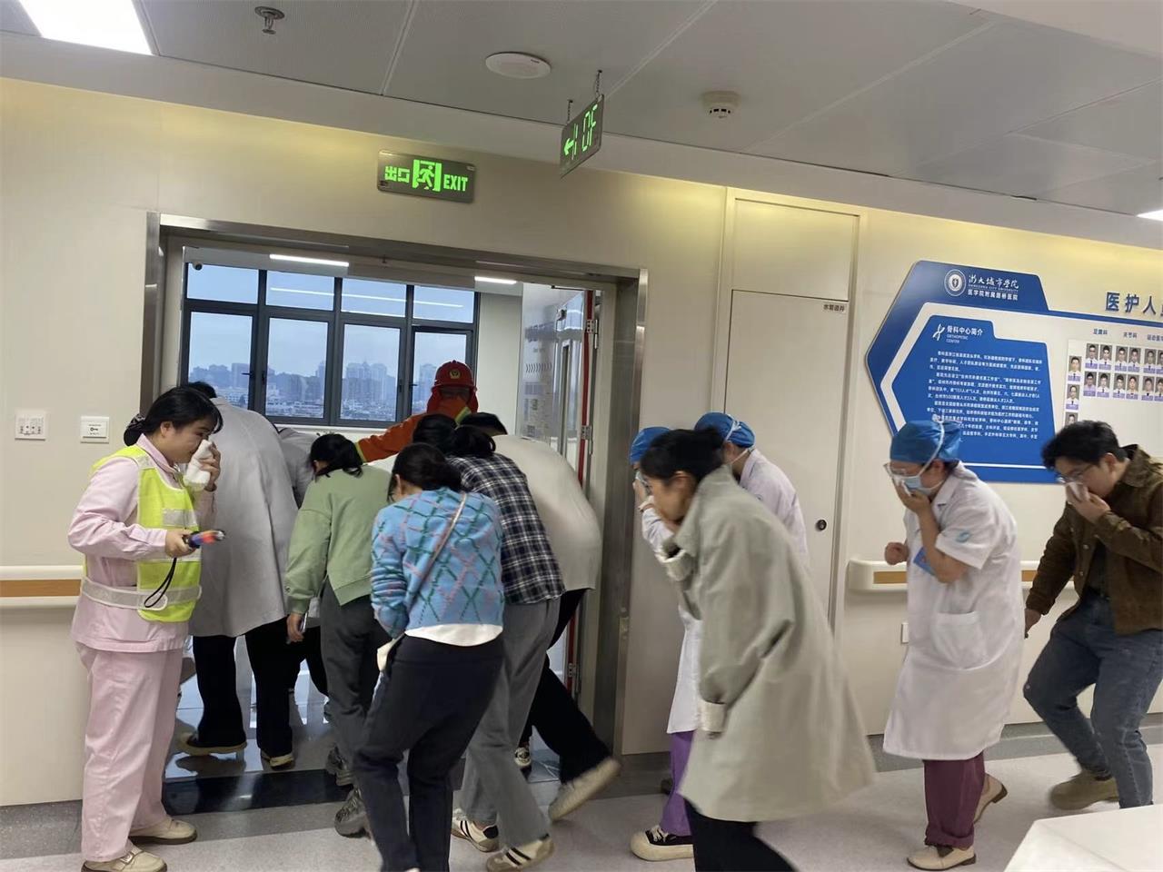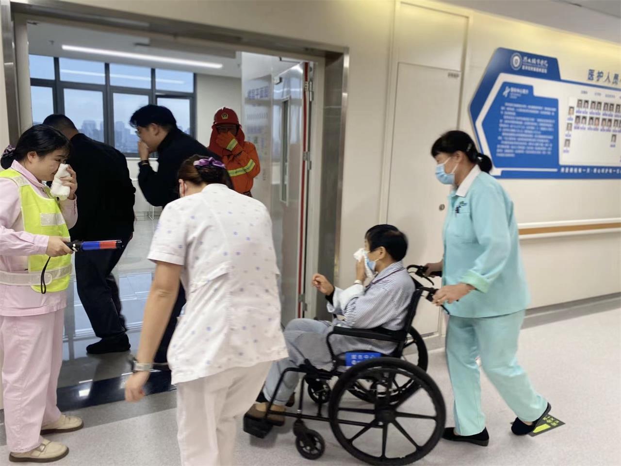 医护人员和患者们迅速进入应急状态,遵循“掩住口鼻、弯腰低姿、有序撤离”的原则,按照预定的疏散路线,在疏导员的引导下,快速、有序地撤离至指定的安全集合点。整个过程紧张而不慌乱,高效且井然有序,充分展现了医务人员应对突发火灾的应急处置能力和对患者高度负责的态度。